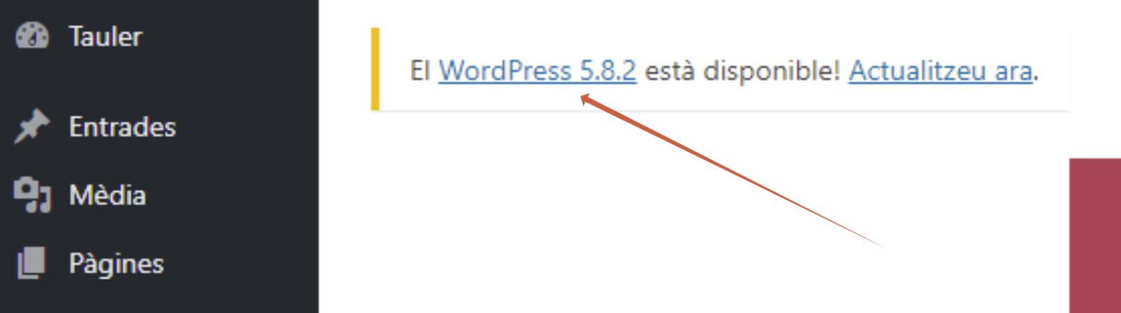 1- La mateixa administració de WordPress ens indica que ens trobem sota una versió antiga, quan suggereix que aquesta sigui actualitzada.