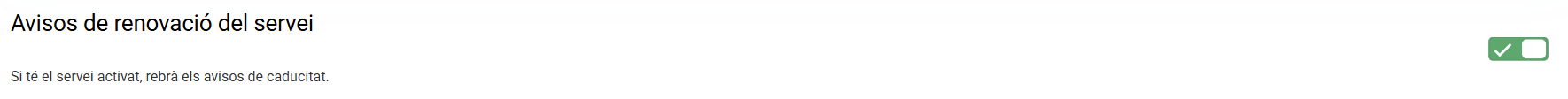 Si voleu rebre els avisos de renovació del vostre servidor dedicat al correu de contacte de cdmon, heu de tenir aquesta opció marcada. En cas que vulgueu deixar de rebre aquests correus només heu de desactivar-lo