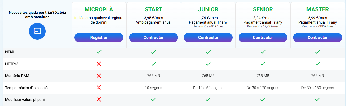 Això ho estableix el pla que tingui associat aquest hosting: