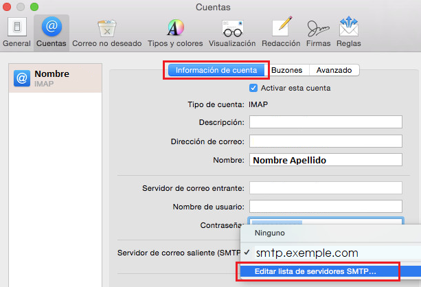 Torna a la pestanya "Informació del compte" i selecciona l'opció Editar la llista de servidors SMTP.