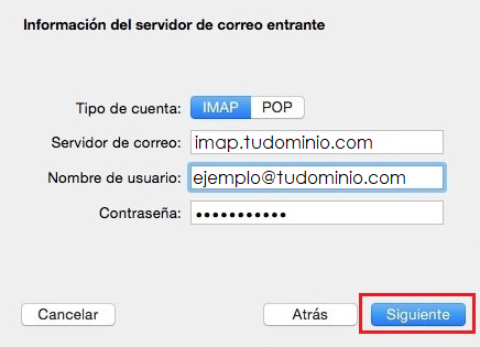 A la següent pantalla selecciona el tipus de protocol de connexió, IMAP o POP, i emplena els següents camps: