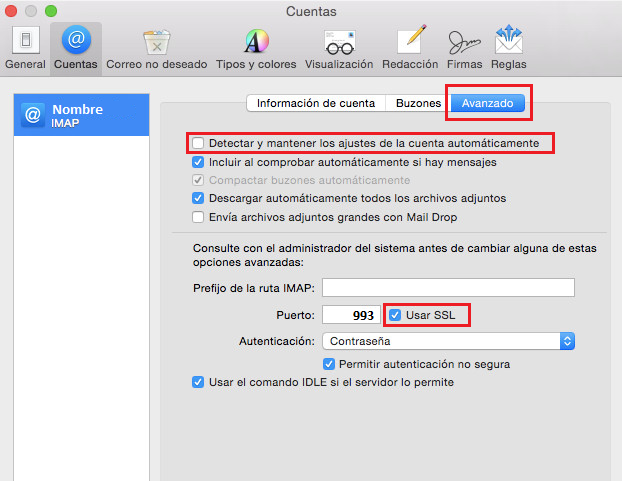 Activa la casella Utilitzar SSL i assegurat que el port és el 993.