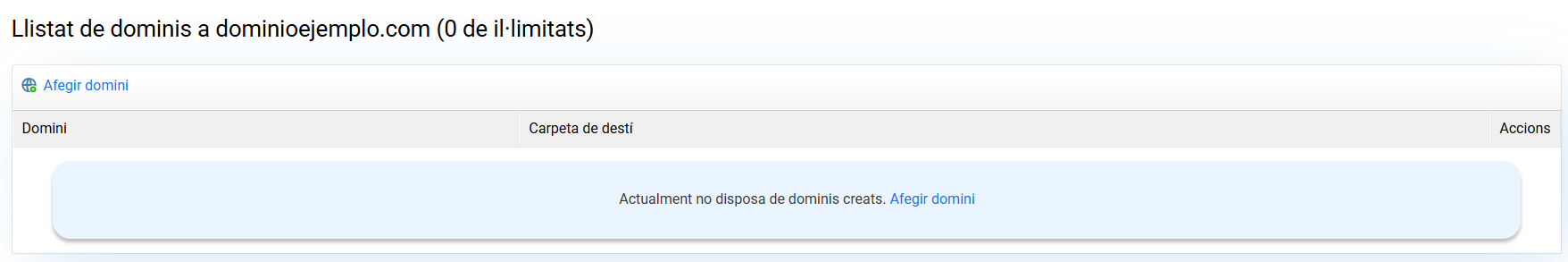 Per afegir dominis has de prémer Afegir domini.