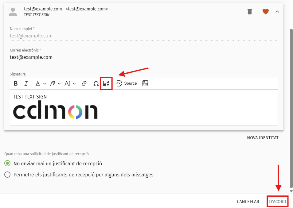 - Si no realitzeu aquest pas, els canvis no es desaran i la signatura no s’aplicarà.