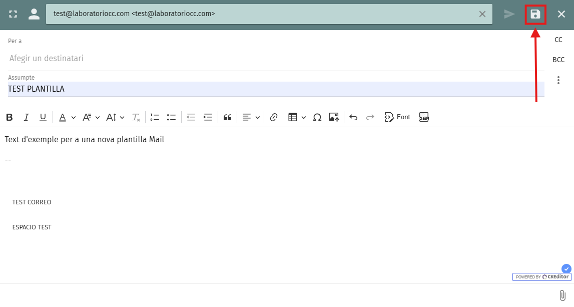 Ara, guardeu el correu com a esborrany. Un cop tingueu el contingut llest, feu clic a la icona Guardar.