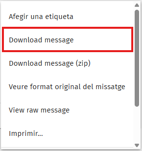 Seguidament, apareixeran diverses accions disponibles; ha d'anar fins a "Download message" i clicar sobre aquest.