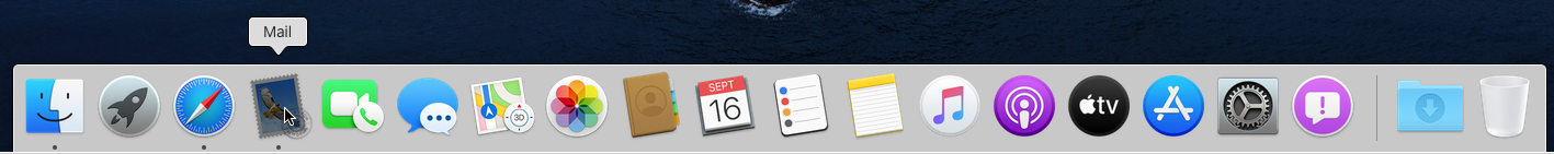 Iniciem MAIL des de la seva icona al Dock o entrant a "Finder", "Aplicacions" i "Mail" per accedir a l'aplicació de Mail de Mac.
