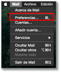 Un cop dins, heu d'anar fins a la cantonada superior esquerra, a l'apartat "Mail" i clicar a "Preferencias" tal com mostrem:
