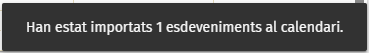 - Un cop finalitzada la importació, a la cantonada inferior dreta es mostrarà un missatge de confirmació indicant quants esdeveniments han estat afegits correctament. Ja podràs veure tots els esdeveniments i dates del teu calendari llistats.