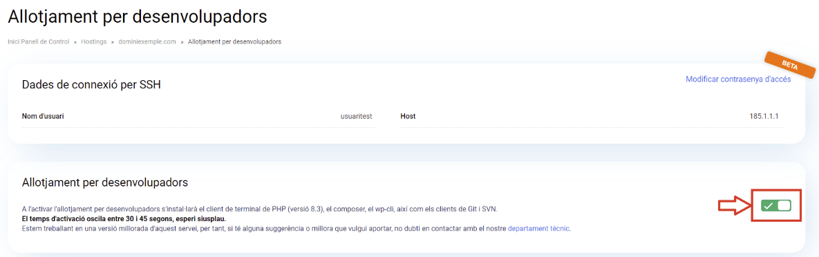 Anteriorment, l'activació de Composer requeria la intervenció del nostre equip de suport. Ara, aquest procés s'ha simplificat i pots activar-lo directament des del panell de control. Segueix aquests passos:
