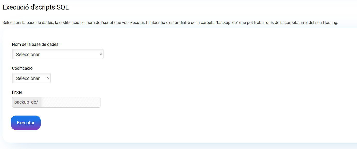 Fitxer: el nom del fitxer que desitges carregar a la base de dades.