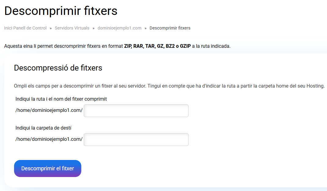 Descomprimir l'arxiu comprimit: