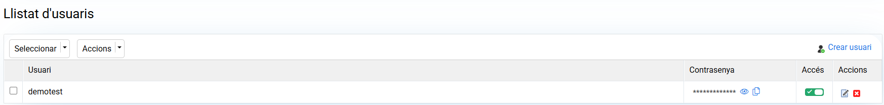 Si tens creats més usuaris, pots seleccionar-los tots marcant el checkbox de l'esquerra i activar-los des del desplegable de "Accions".