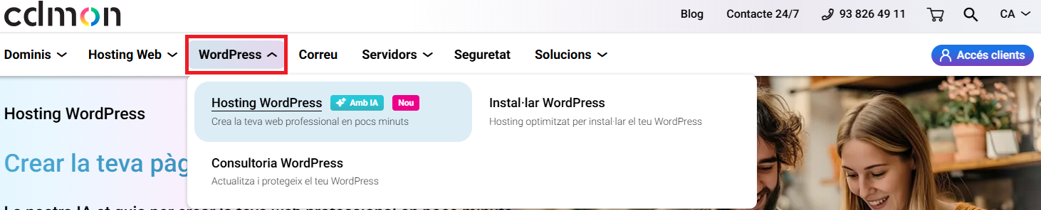 Amb la nostra demo del Hosting WordPress pots provar l'eina d'Intel·ligència Artificial que simplifica la creació de llocs web, sense necessitat de registrar-te ni contractar el servei per fer aquesta prova. T’expliquem com fer-ho pas a pas: