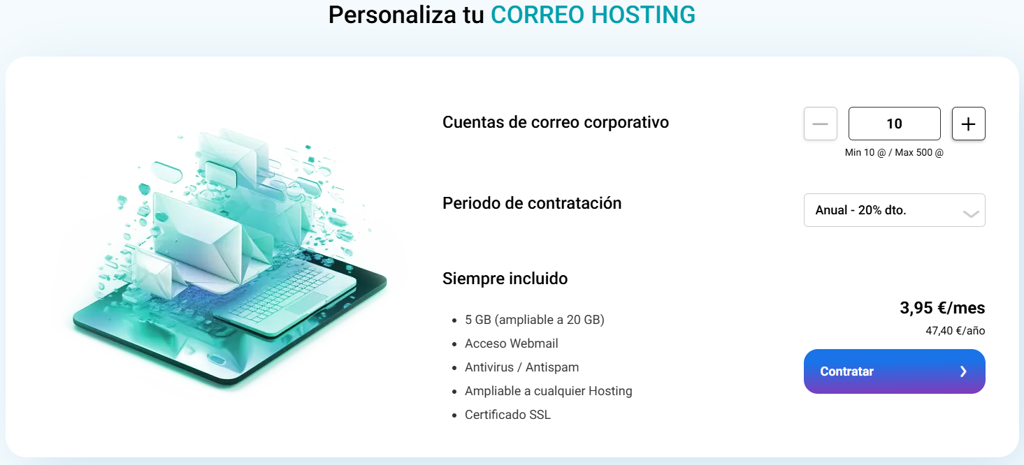 Número de comptes : El pla Mail té un mínim de 10 comptes de correu electrònic, ampliables segons les vostres necessitats.