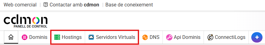 Has de clicar a "Llistat d'allotjaments" en cas que la modificació massiva sigui en allotjaments compartits. Si en canvi, vols fer la modificació en allotjaments que tens en un servidor virtual o dedicat, has de fer clic a "Servidors Virtuals/Dedicats":