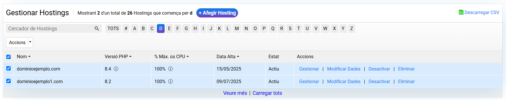 En aquesta guia mostrem els passos a seguir per poder fer una modificació massiva de la versió de PHP de molts hostings de cdmon. També mostrarem com tornar a la versió de PHP que tenies assignada a l'allotjament de forma massiva.