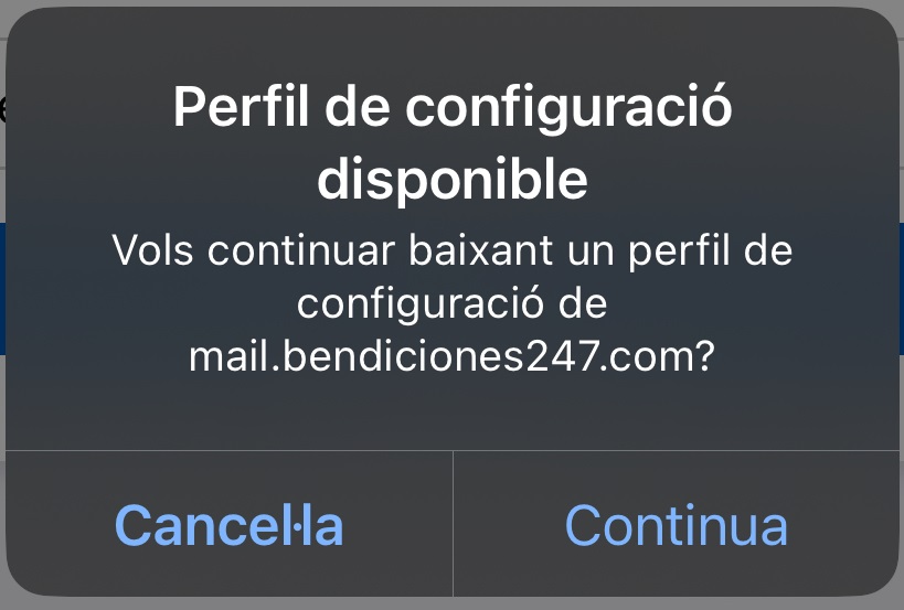 - Utilitza l’enllaç mobileconfig, obre Safari o un altre navegador i ves a: https://mail.elteudomini.com/mobileconfig