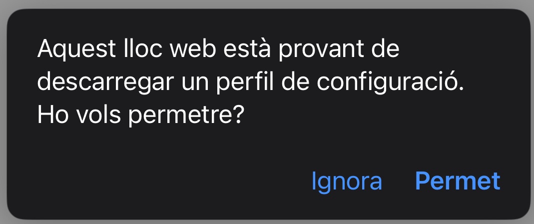 - El sistema et demanarà confirmació per descarregar el perfil. Selecciona "Continua"