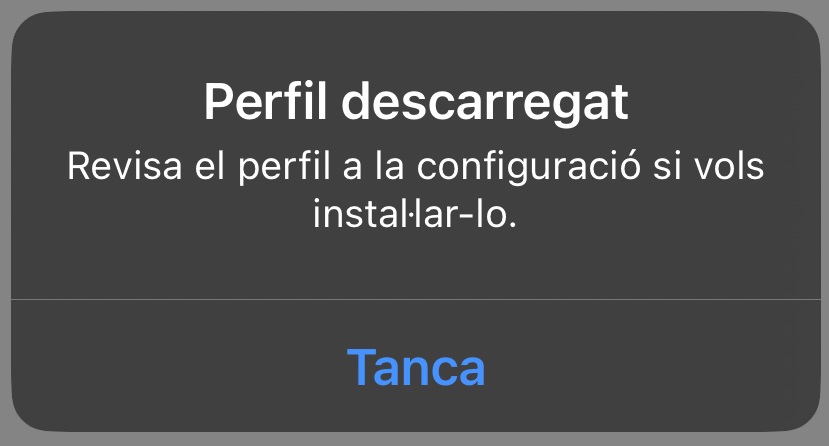 - Veuràs la confirmació que el perfil s’ha descarregat. Toca "Tancar".