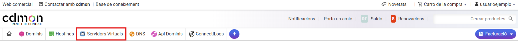 Per crear un allotjament en el servidor Virtual, ha d'accedir al panell de gestió del servidor Virtual des del panell de control de cdmon: