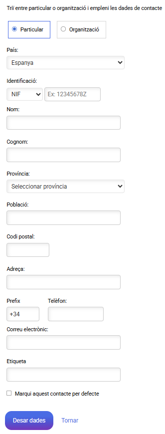 Un cop hi hagi accedit, té l'opció d'"Afegir contacte" per a afegir les dades del contacte del registre: