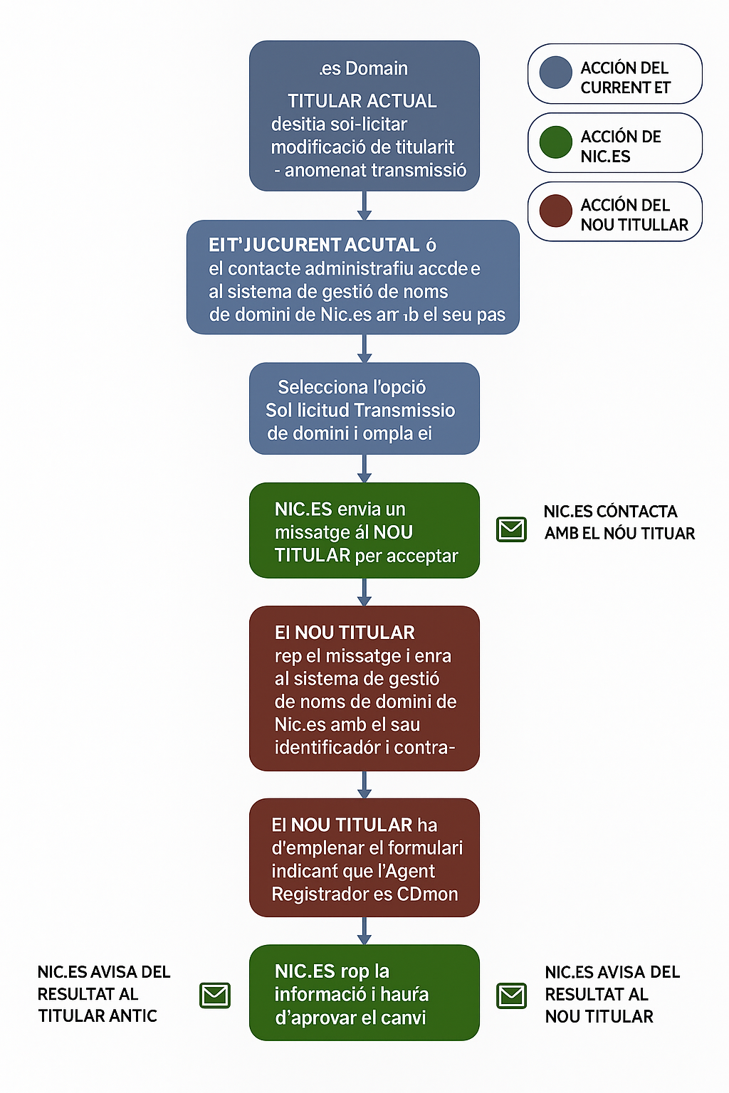 El procés de modificació de titular d'un .es és diferent que els canvis de titular d'altres extensions.