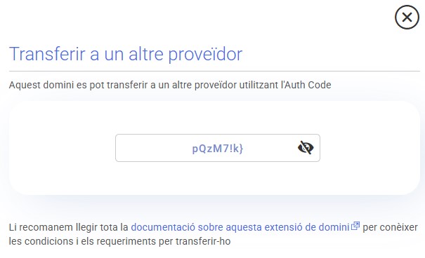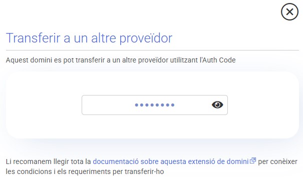 El AUTH CODE és un codi necessari per poder realitzar la transferència d'un domini.