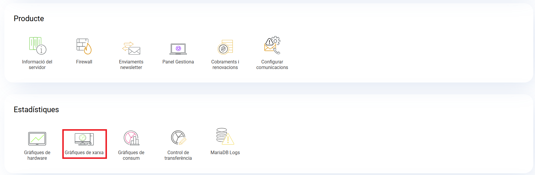 Des del teu panell de control de cdmon pots veure les gràfiques de xarxa del teu servidor Virtual Up. Accedeix a la gestió del Virtual des del teu panell de control i prem en l'opció Gràfiques de xarxa.