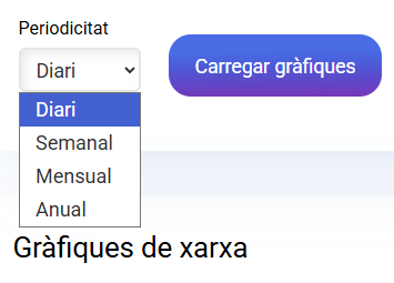 A la part superior podràs seleccionar el rang de temps que vols que es mostri la gràfica: diàriament, setmanalment, mensualment o anualment.