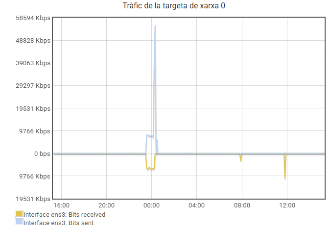 Tràfic de la targeta de xarxa 1: gràfiques de xarxa de la boca 1 de la targeta de xarxa secundària del servidor. La boca 1 és la connexió a la intranet del servidor Virtual Up, és on normalment es realitzen la còpia de seguretat i d'altres tasques internes.