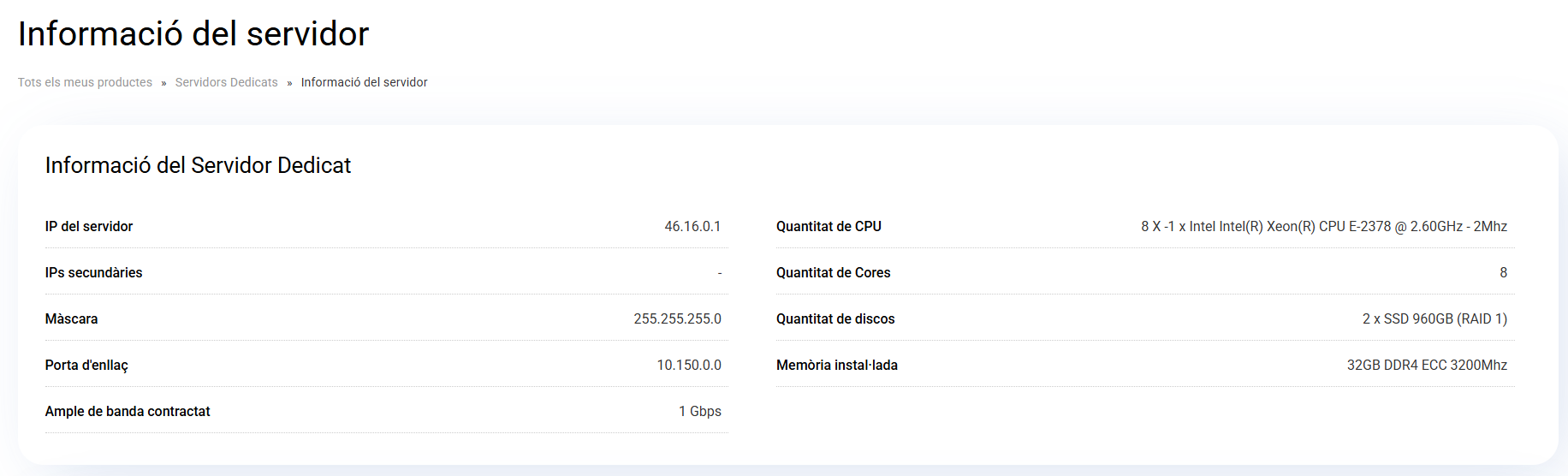 IPs secundàries: IPs addicionals contractades en el servidor dedicat.