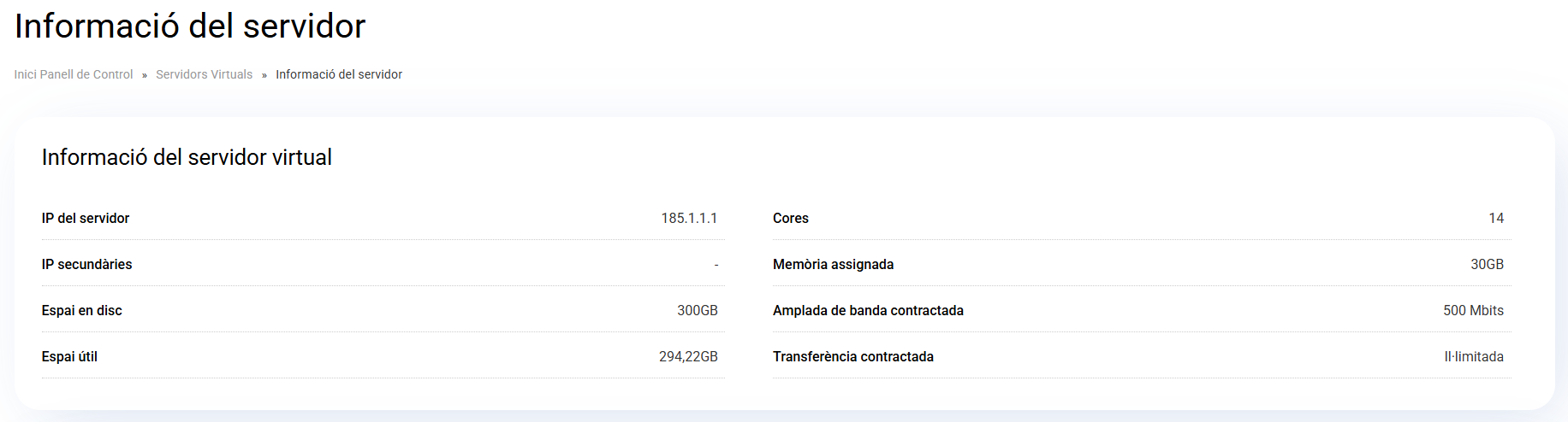 En aquest bloc tens una visió general de l'estat del teu servidor Virtual Up.