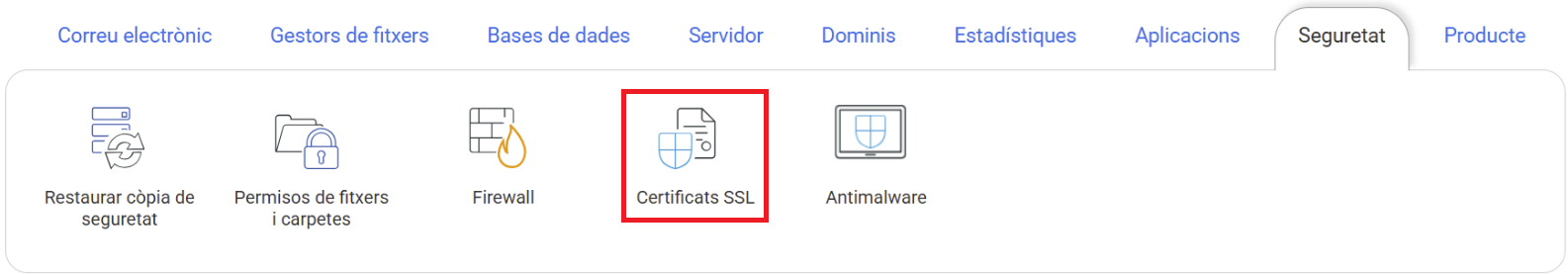 Ves a la secció de "Seguretat" i fes clic en Certificats SSL: