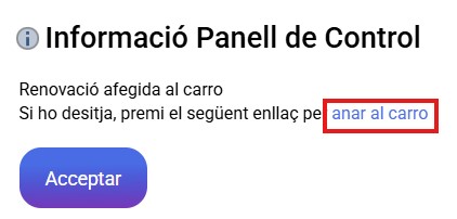 - En el missatge d'informació prem a l'enllaç anar al carro.