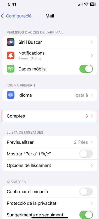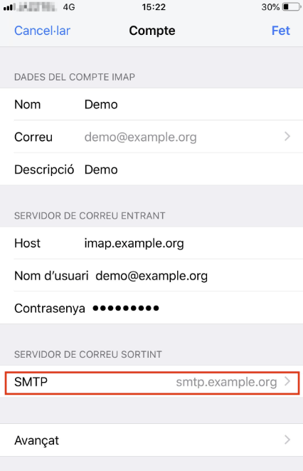 Perquè l'enviament de correus funcioni correctament a iPhone, has de configurar: