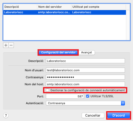 Perquè l'enviament de correus funcioni correctament a Mail de Mac, has de configurar: