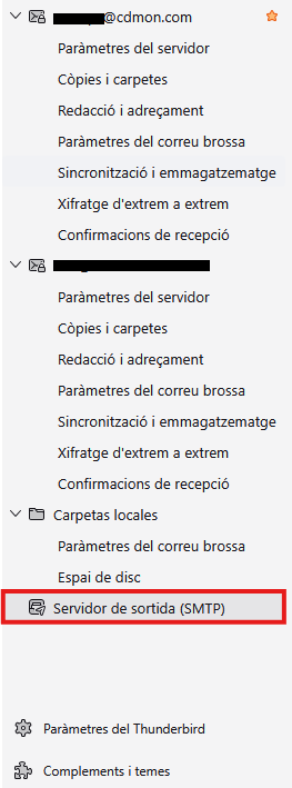 - Si no pots enviar correus, revisa que no estigui configurat el port 25 i que Thunderbird desi correctament els canvis.