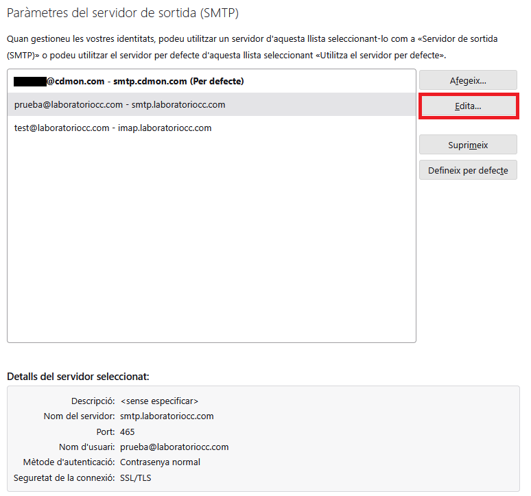 - Selecciona el servidor i fes clic a Editar