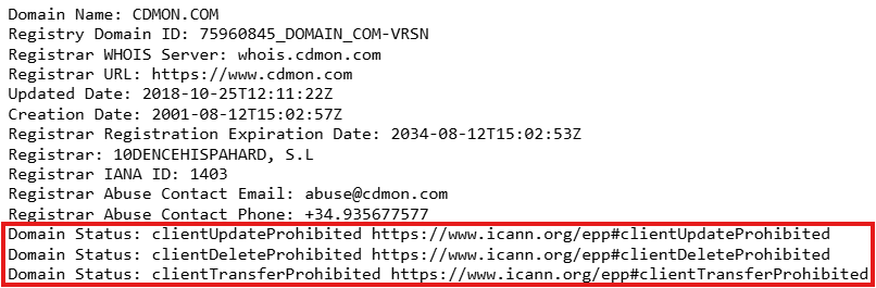 clientTransferProhibited: el domini es troba actiu, però bloquejat. En aquest estat el domini no pot ser transferit a un altre registrador.