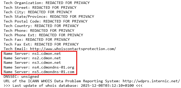 Tipus de dades WHOIS d'un domini: Servidors DNS
