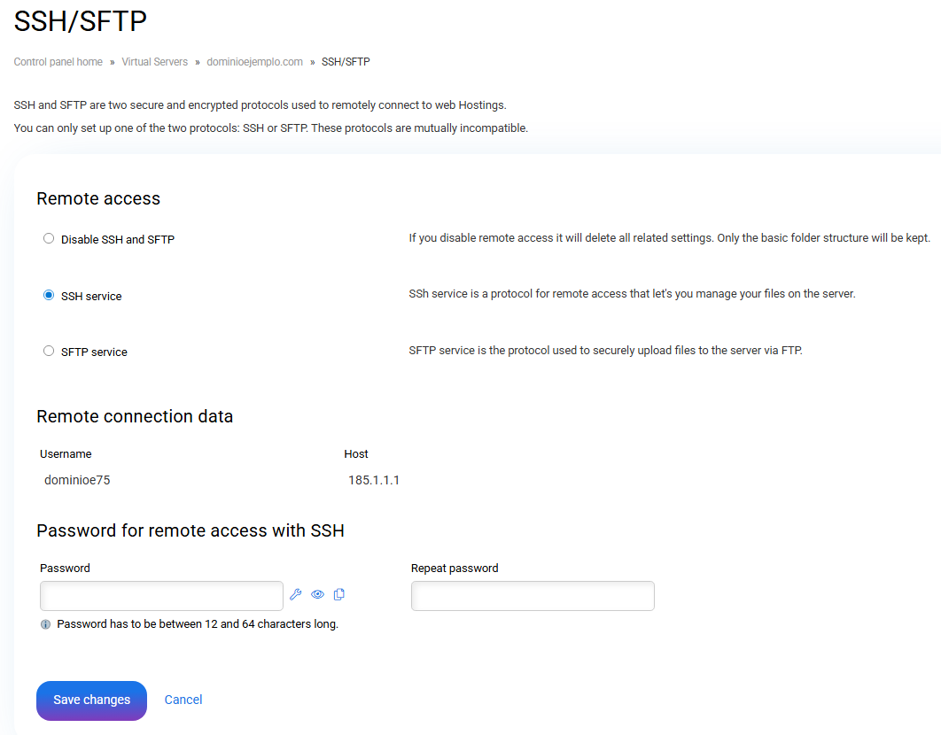 Note:When activating the SSH modifies the owner of the /home folder of your accommodation.
