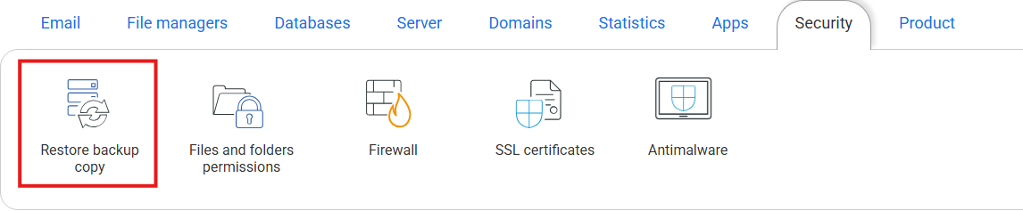 Restore databases:This option allows you to retrieve the hosting databases without making any changes to web files.