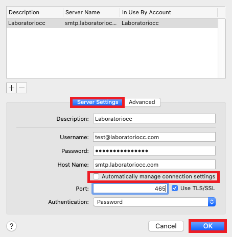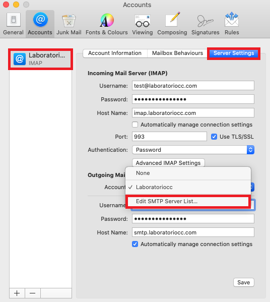 - If you cannot send emails, check that port 25 is not configured and that Mac Mail saves the changes correctly.