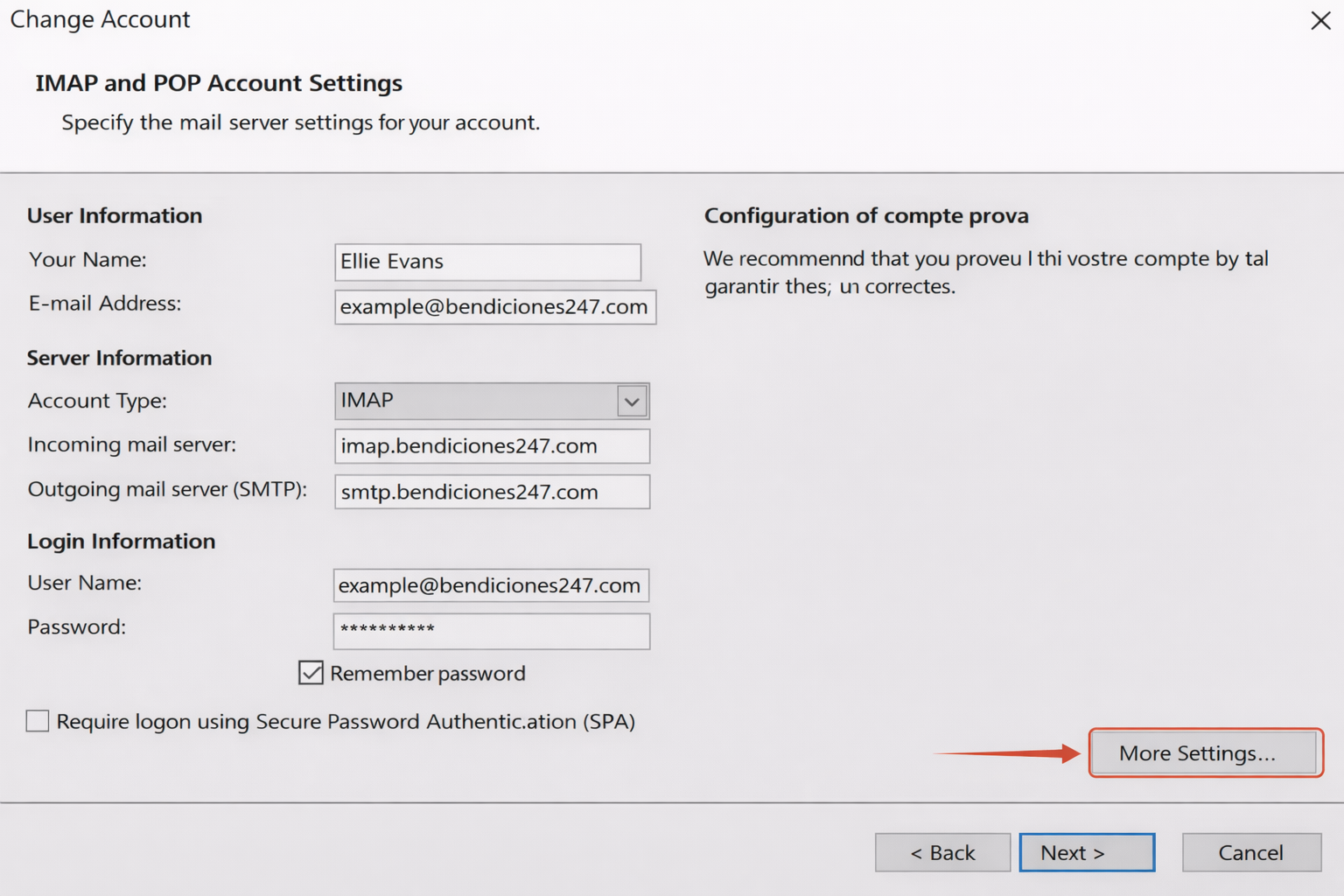 - Enable: "My outgoing server (SMTP) requires authentication"