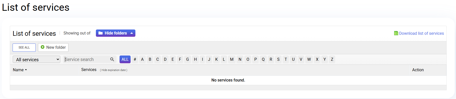 If no services appear when accessing your panel, you may be using credentials from a user account with no contracted services. Check your emails, especially renewal and expiration reminders, to identify the correct user. If the issue persists, contact our customer support team.