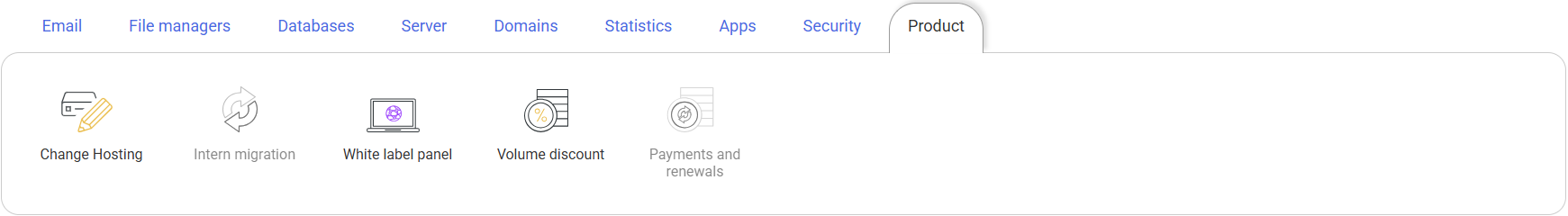 Internal migration allows transferring the management of a hosting service to another cdmon user.