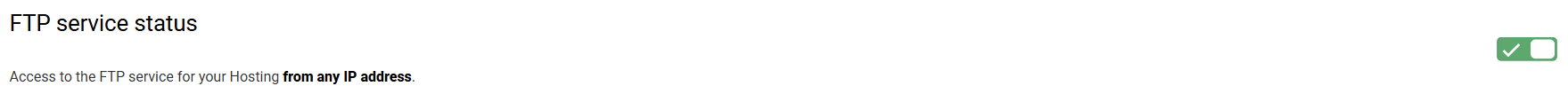 If you have trouble accessing FTP, check the service status in "File Managers" and "FTP" within hosting management. The FTP service may be disabled if it has not been used in the last 30 days, as a security measure to prevent unauthorized access to the server.