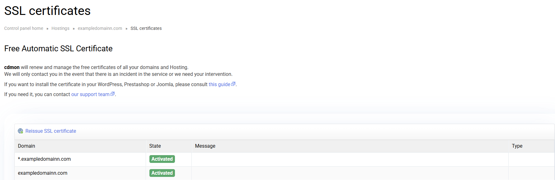 In cdmon you can hire different types of SSL security certificates from the Hosting Control Panel, in the SSL paragraph. Below we show a comparison of the certificates that can be applied for. 1.-Comparative table Extension Let's Encrypt Positive SSL ...