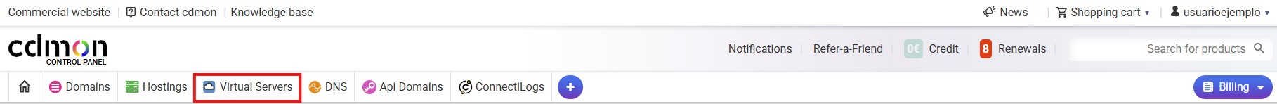 - Auto-configure DNS: Option that automatically sets the DNS on CDmon.com for the domain hosted on the virtual server.